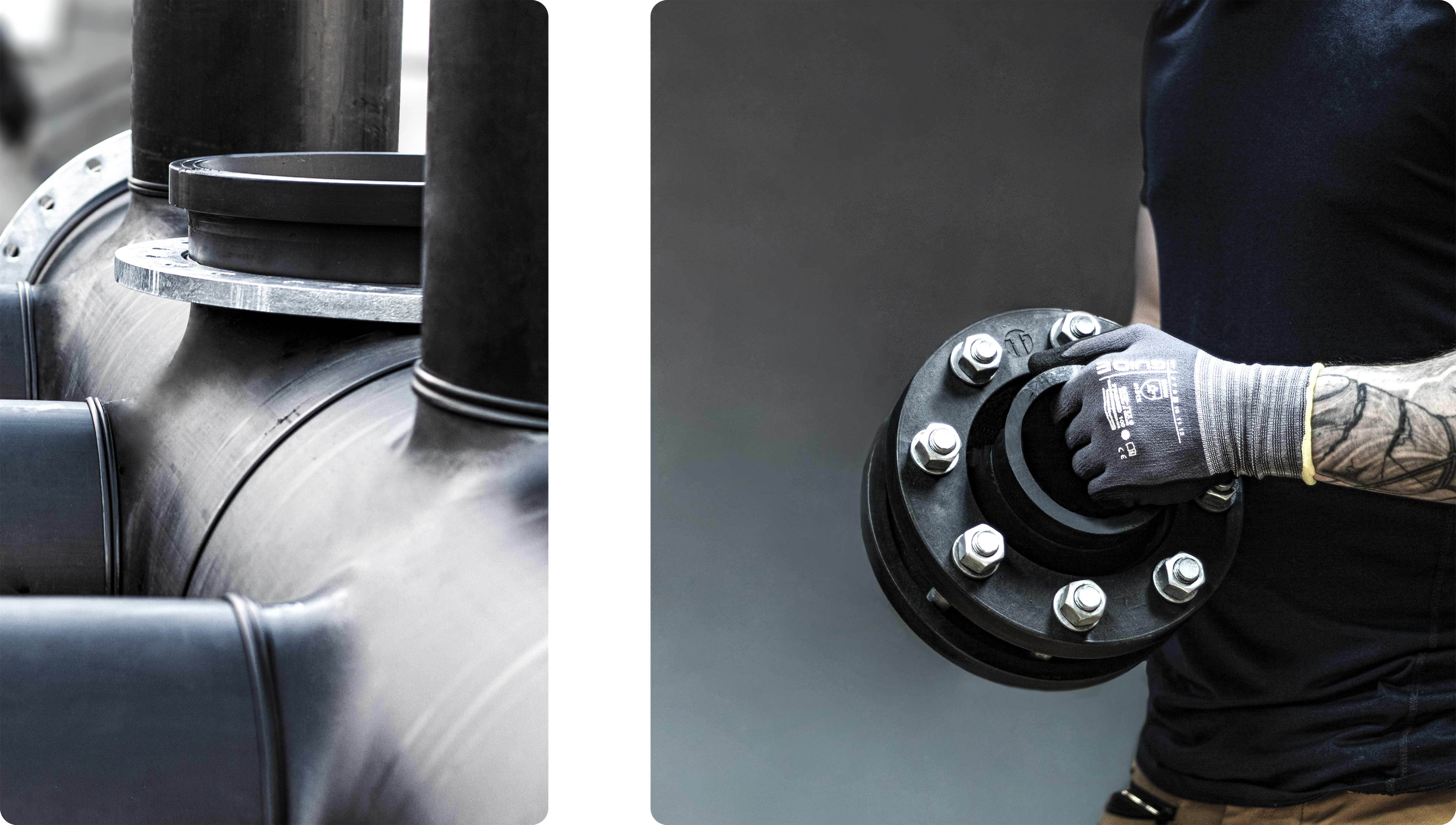 • Radius 1,5xD • Reduksjonsfaktor 0,8 • For buttsveising og elektromuffe • PE 100 sort