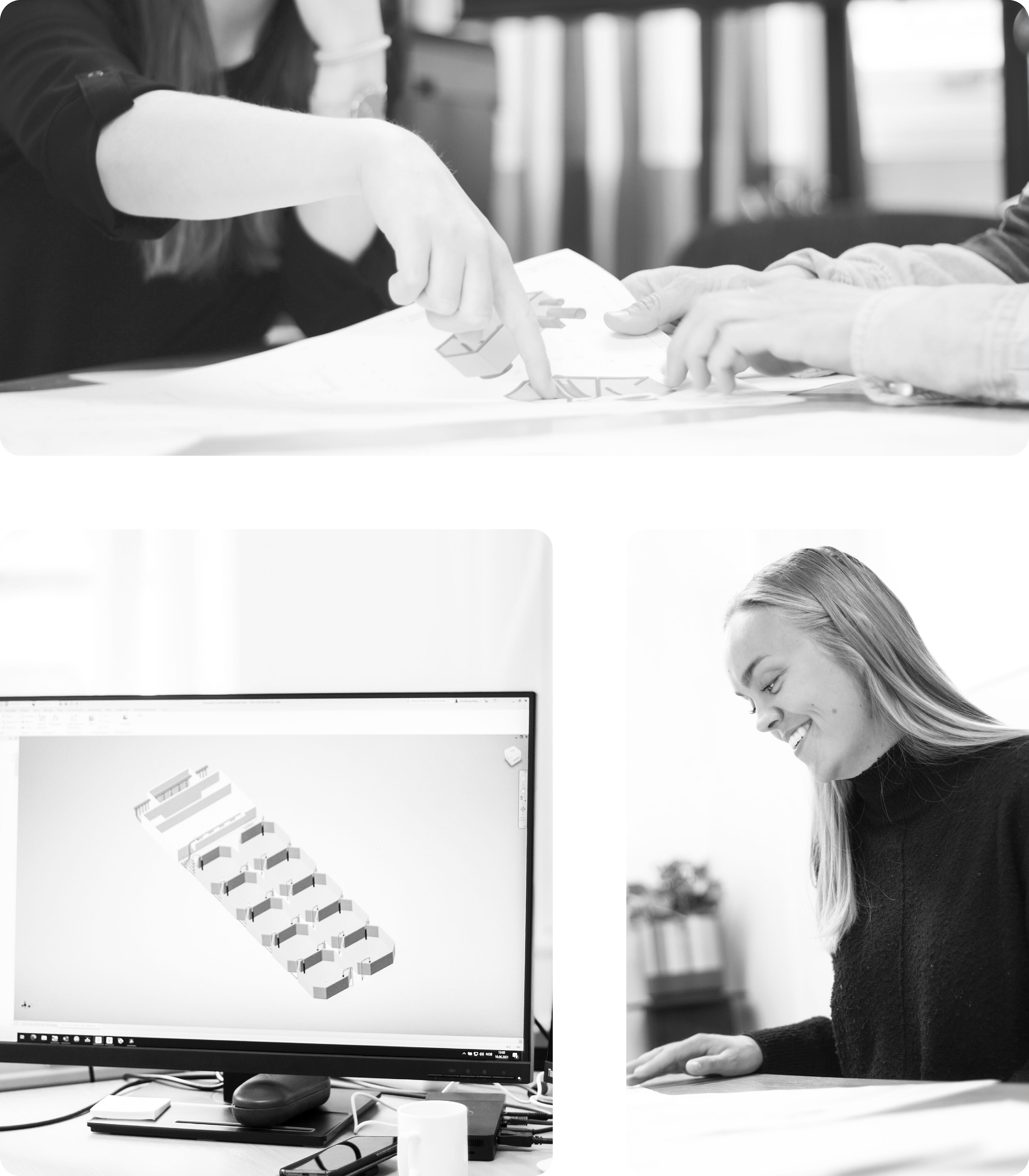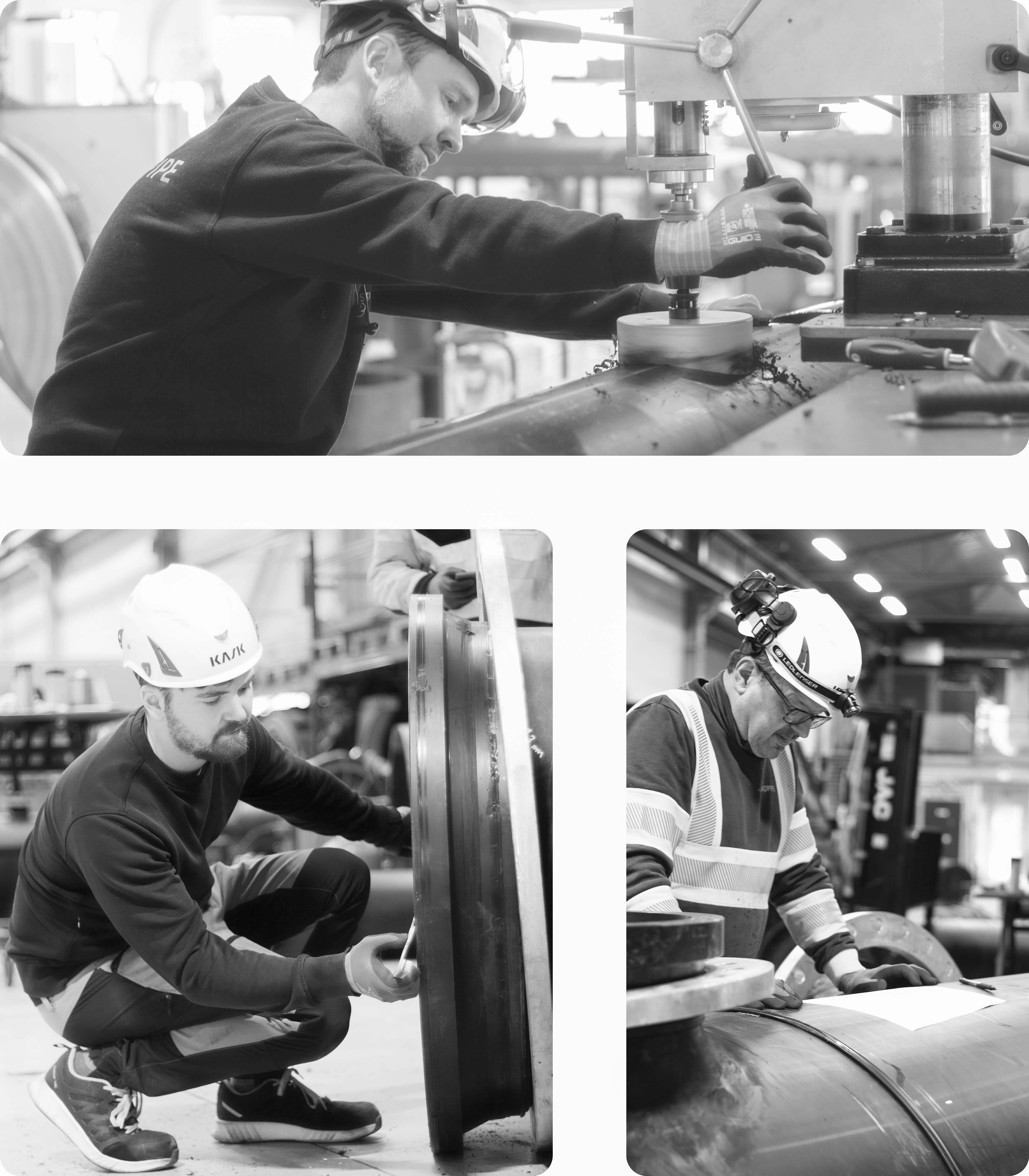 Vår produksjon inneholder alt fra høyteknologisk modellering til håndverk. Det kan begynne med en gul lapp og ende opp i et komplett røranlegg. Underveis i prosessen jobbes det i tverrfaglige miljøer som er helt i front av utviklingen.